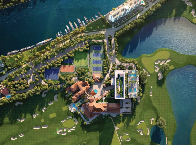 This 105-acre resort property will feature refined indoor and al fresco dining venues, holistic spa and wellness offerings, racquet sports, marina access, and a Greg Norman–designed championship golf course.